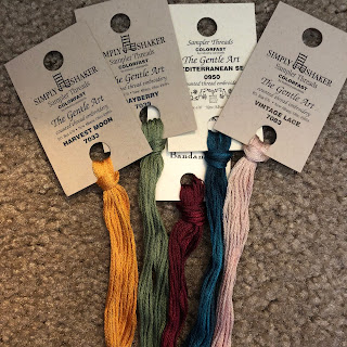 I'm stitching mine on 18 count Long Coffee from xJuDesign on Etsy with some of the called for colors.